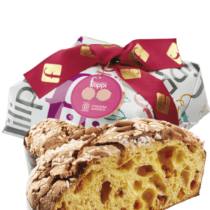 Colomba Avoriè Classica der Pasticceria Filippi: Ein traditioneller italienischer Osterkuchen, der handwerkliches Können und hochwertige Zutaten vereint. Hergestellt aus Butter, Mehl, Eiern und Vanilleschoten, entsteht durch natürliche Sauerteigführung eine weiche, unregelmäßige Teigstruktur. Kandierte Orangenschalen verleihen dem Teig ein zartes Aroma, während eine reichhaltige Glasur aus feinen ‚Prima Bari‘-Mandeln, Zucker und Eiweiß für einen knusprigen Abschluss sorgt. Jede Colomba wird von Hand verpackt, wobei umweltfreundliche Materialien verwendet werden, die aus recycelten Flaschen gewonnen wurden. ​ Zutaten: Weizenmehl, Butter, Eigelb von Freilandeiern, Rohrzucker, Wasser, natürlicher Sauerteig (Weizenmehl, Wasser), italienischer Honig, frische Milch, Salz, natürliches Aroma aus Vanilleschoten, kandierte Orangenschalen (Orangenschalen, Glukosesirup, Zucker), Zucker, Eiweiß von Freilandeiern, Mandeln, Mandelmehl, Olivenöl, Reismehl, Maismehl, Reisstärke. Hinweis: Kann Spuren von anderen Schalenfrüchten, Soja und Senf enthalten. Nährwerte pro 100 g: Brennwert: 1677 kJ / 400 kcal Fett: 18 g davon gesättigte Fettsäuren: 8,8 g Kohlenhydrate: 52 g davon Zucker: 34 g Eiweiß: 7,2 g Salz: 0,1 g