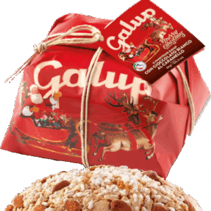 Der Panettone Gran Galup “Caramello Salato” vereint eine zarte, natürlich gelockerte Krume mit der köstlichen Verbindung aus weißer Schokolade und cremigem Karamell. Jeder Anschnitt duftet nach Feiermomenten: innen weich und aromatisch, außen mit der typischen Galup-Haselnussglasur, garniert mit Zuckerkörnern und ganzen Mandeln – ein ausgewogenes Spiel aus Schmelz, Süße und feinem Crunch. Format: 1000 g.