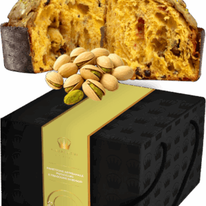 Der Panettone “Pistazien und Erdbeeren” der Pasticceria Calciano aus Tricarico in der Basilikata ist ein Meisterwerk süditalienischer Feinbäckerei. Das Traditionshaus vereint jahrzehntelange Erfahrung mit kreativer Raffinesse und präsentiert hier eine Komposition, die edlen Pistaziengenuss mit fruchtiger Frische kombiniert. Die Basis bildet ein aufwendig geführter Sauerteig (lievito madre), der über 36 Stunden reift und dadurch eine unvergleichlich luftige Textur entwickelt. In den goldgelben Teig werden handverlesene Erdbeerstücke eingelegt, die durch ihre natürliche Süße und feine Säure Akzente setzen. Eine zartschmelzende Pistaziencremefüllung aus 100 % reinen sizilianischen Pistazien sorgt für nussig-intensiven Kontrast. Genießer.