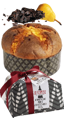 Prodotto da forno a lievitazione naturale. Ingredienti: PANETTONE PERE E CIOCCOLATO PANETTONE CON CUBETTI DI PERA CANDITI E GOCCE DI CIOCCOLATO, SENZA UVETTA E SENZA SCORZE DI AGRUMI CANDITI. PRODOTTO DOLCIARIO DA FORNO A LIEVITAZIONE NATURALE. Ingredienti: farina di FRUMENTO, cubetti di pera canditi 17% (cubetti di pera, sciroppo di glucosio-fruttosio, succo di limone concentrato), BURRO, UOVA fresche, zucchero, gocce di cioccolato 7% (zucchero, pasta di cacao, burro di cacao, emulsionante: lecitina di girasole, aroma naturale di vaniglia), tuorlo d’UOVA* fresche, LATTE; lievito naturale (farina di FRUMENTO, acqua), emulsionanti: mono e digliceridi degli acidi grassi, aromi, sale, burro di cacao. Può contenere frutta a guscio e soia. *uova da allevamento a terra. Conservare in un luogo fresco e asciutto. Prodotto in Italia. Origine degli ingredienti – EU e non EU. Valori nutrizionali medi per 100g: Energia: 1645kJ/393kcal Grassi: 18g di cui saturi: 11g Carboidrati: 49g di cui zuccheri: 25g Fibre: 1,9g Proteine: 7,7g Sale: 0,58g.