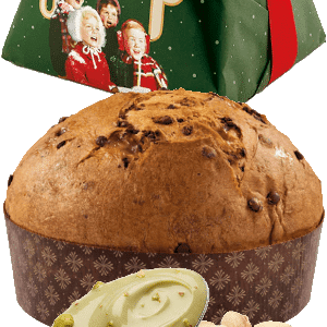 PANETTONE SENZA UVETTA E CANDITI, CON GOCCE DI CIOCCOLATO E PISTACCHIO, FARINA DI GRANO TENERO ‘0’ – BURRO – Gocce di cioccolato fondente 11% (zucchero, pasta di cacao, BURRO di cacao, emulsionante: LECITINA DI SOIA) – Zucchero – Tuorlo d’uova fresche di categoria A – Lievito naturale (farina di grano tenero ‘0’, acqua) – Emulsionante: mono e digliceridi degli acidi grassi – LATTE intero – Sciroppo di zucchero invertito – Sale – Miele – Sciroppo di glucosio/fruttosio – Estratto di malto d”orzo – Aromi naturali – Aroma naturale di vaniglia Bourbon. FARCITURA AL PISTACCHIO 17%: sciroppo di glucosio, zucchero, acqua, Pistacchio in pasta 15%, olio di semi di girasole, LATTE scremato in polvere, tuorlo d”uovo zuccherato (tuorlo d”uovo, zucchero), gelificanti: pectina, amido modificato di mais, sale, aromi naturali, emulsionante: E471, Conservanti: potassio sorbato, estratto di spirulina. Può contenere altra FRUTTA A GUSCIO e SENAPE. Origine degli ingredienti: UE e Non-UE. Conservare in luogo fresco e asciutto a una temperatura max di 18 ÷ 20°C. Il prodotto non deve essere esposto al sole o vicino a fonti di calore. Valori nutrizionali medi per 100g: Energia: 1752kJ 419kcal Grassi: 21g di cui saturi: 12g Carboidrati: 48g di cui zuccheri: 23g Proteine: 7,2g Sale: 0,51g.